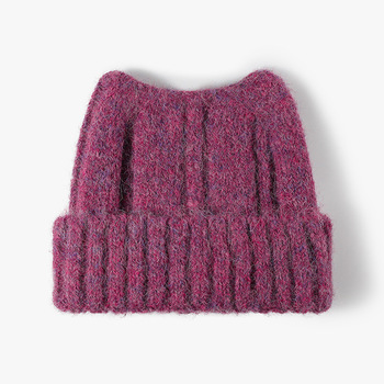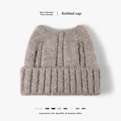 여성용 울 혼방 고양이 귀 비니 접이식 커프가있는 겨울 니트 모자 부드럽고 따뜻한 패션 느린 모자
