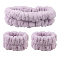 コーラルフリースヘッドバンドスポンジリストバンドセット防水コーラルフリースヘアバンド女性用洗顔スキンケア化粧入浴