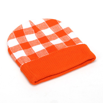 여성용 격자 무늬 니트 비니 커프 겨울 모자 추운 날씨를위한 따뜻한 방풍 원사 해골 모자