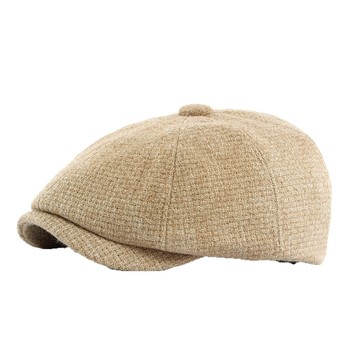 女性用秋冬オクタゴナルウールブレンドニットキャップ新無地英国ヴィンテージニュースボーイハット男性用カジュアルスタイル
